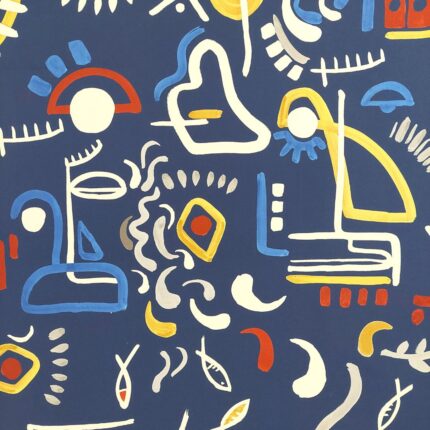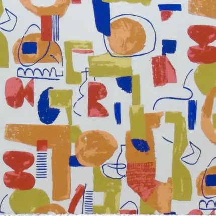 Arazzo da parete in rasatello di cotone raffigurante forme astratte.