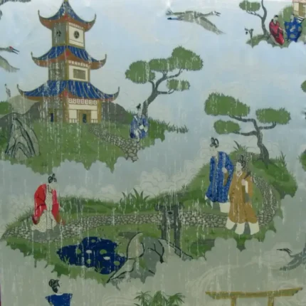 Arazzo da parete in viscosa e seta raffigurante paesaggio orientale.