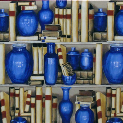 Arazzo da parete in cotone 100% raffigurante libreria con vasi